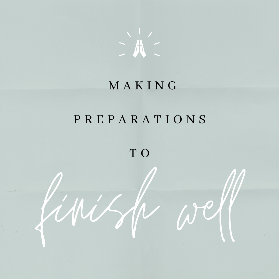 Making preparations to finish well is grounded in the truth that this world is not our home. Our true home awaits us in heaven. There our Savior will greet us with open arms and we will finally be relieved of the trials and tribulations of the race we’ve run. My mentor, Linda Jo Powell crossed her finish line in June of 2022. She was a STRONG advocate of making preparations. Her favorite question to ask was, “How are you preparing your heart for…” That could be anything on the horizon – Easter, Christmas, becoming a grandparent, entering menopause 🙂 She often shared Scripture from different translations and it was helpful in my learning. Matthew 25:23 in the New Living Translation says this, “The master said, ‘Well done, my good and faithful servant. You have been faithful in handling this small amount, so now I will give you many more responsibilities. Let’s celebrate together!’ Picturing this celebration at the end of my race inspires me to stay with my preparations and to remain faithful with whatever He’s given me.